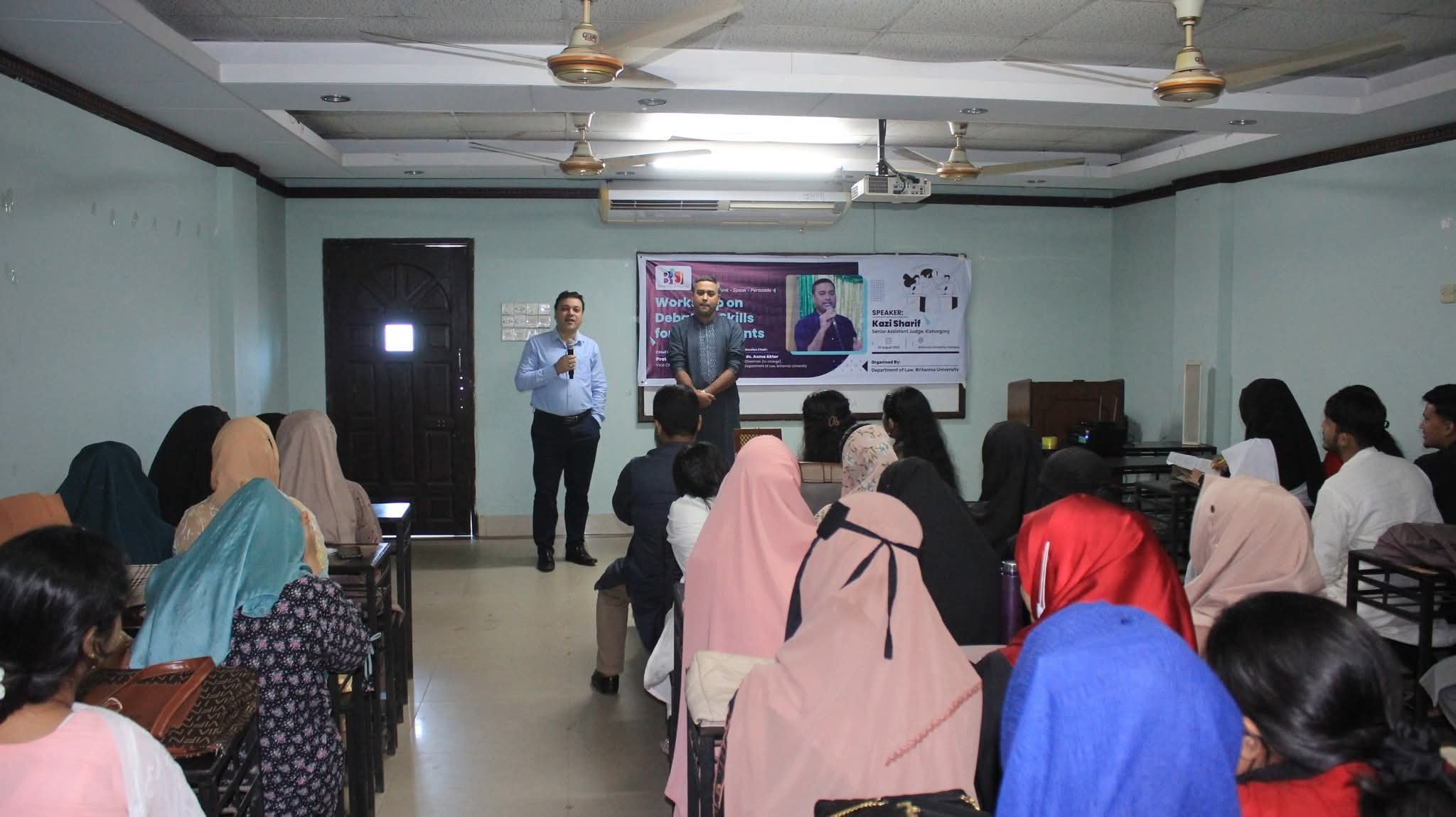 The Department of Law at Britannia University successfully organized an enlightening Workshop on Debating Skills for Law Students on 29th August 2025. The event was designed to enhance the essential debating and public speaking abilities of law students, which are crucial for their academic excellence and professional career in the legal field.